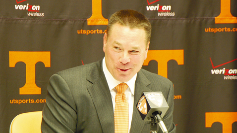 Butch Jones smiles as he addresses the media at the Stokely Family Media Center at Neyland Stadium on National Signing Day. The new UT head football coach and his staff signed 21 players on Feb. 6. Photo by Dan Andrews