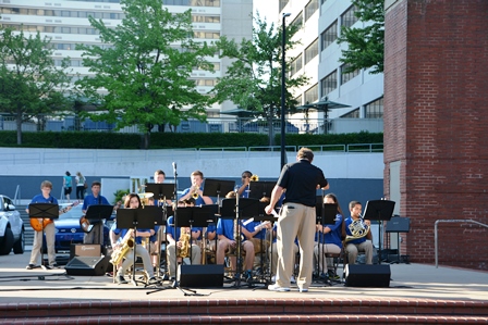 The Jazz ensemble is small and mobile which allows them to get out and play venues like Jazz on the Square.
